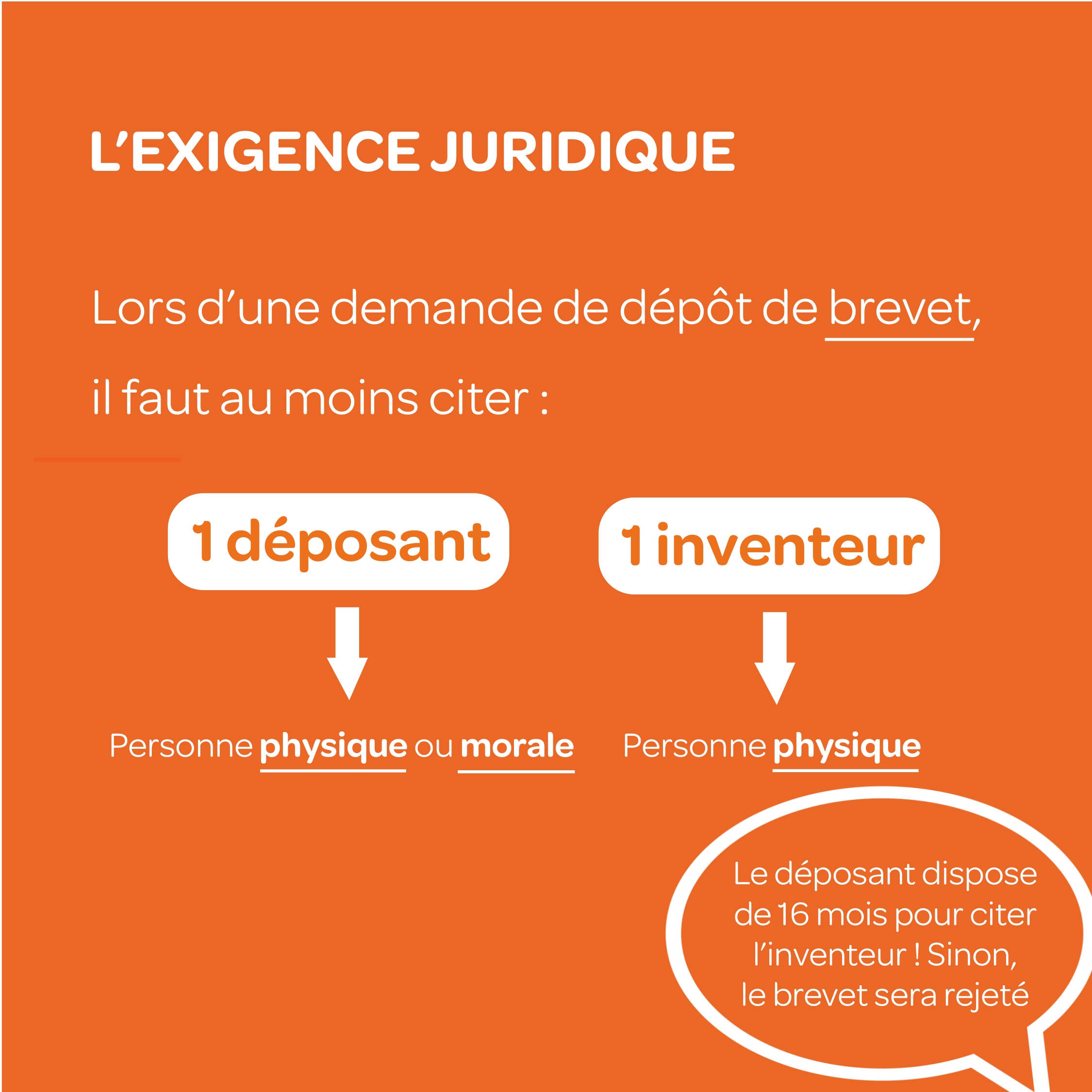 - JL : Et attention ! Si aucun inventeur n’est cité à l’issue de ce délai de 16 mois, le rejet de la demande de brevet peut être prononcé.